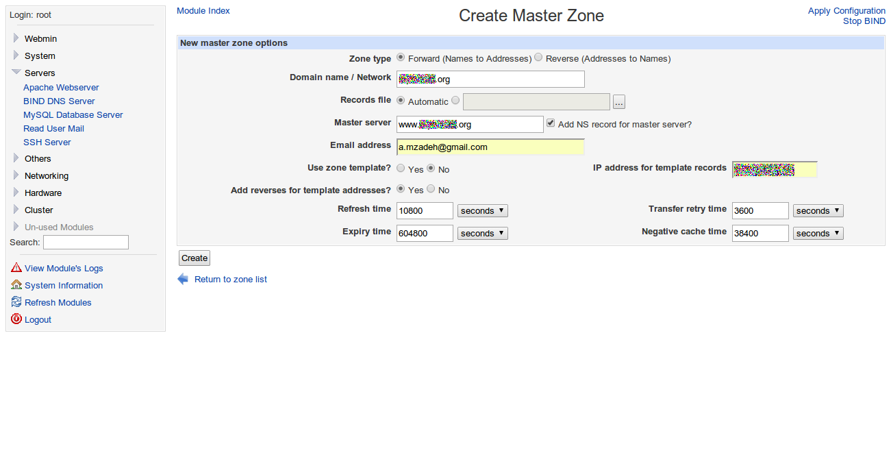 ۴-۱ ) گزینه Create master zone را از قسمت انتهای صفحه انتخاب میکنیم.